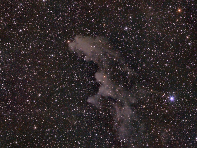 Instrument: 16" Newton bei f/4; Moravian G4-9000 bei -30°C; je 6x5min H-alpha, R,G und BAusschnitt aus Simeis 147